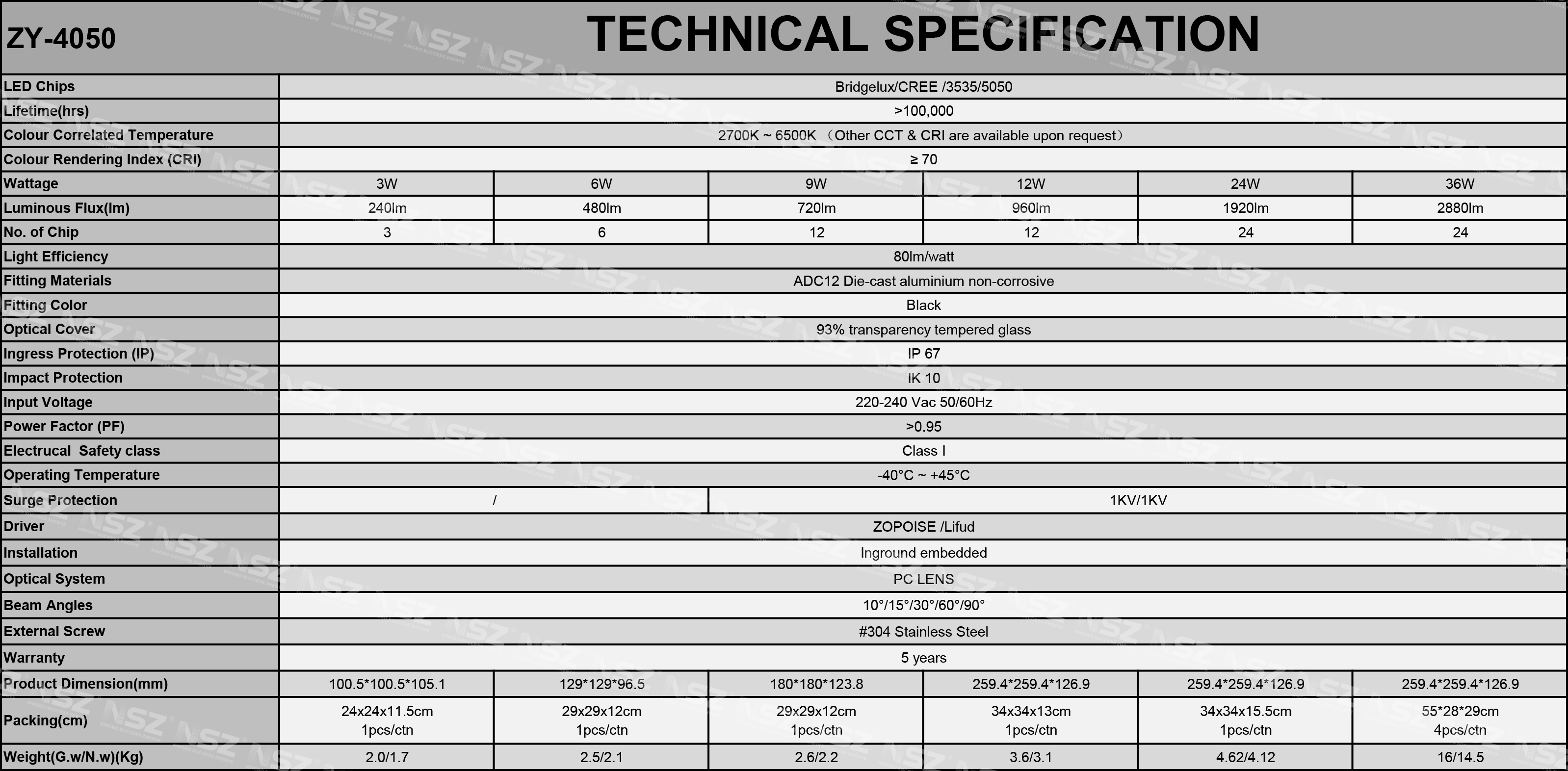 واتج من 3W LED LED تحت الأرض ، 6W LED LED تحت الأرض ، 9W LED LED تحت الأرض ، 12 وات LED تحت الأرض ، 24W LED تحت الأرض ، 36W LED تحت الأرض ضوء الأرض