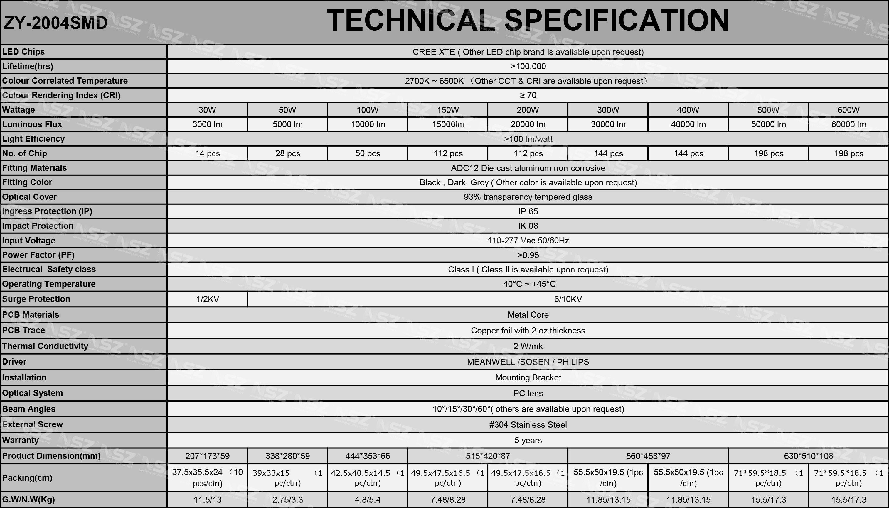 IP65 ، IK08 ، 5 سنوات ضمان